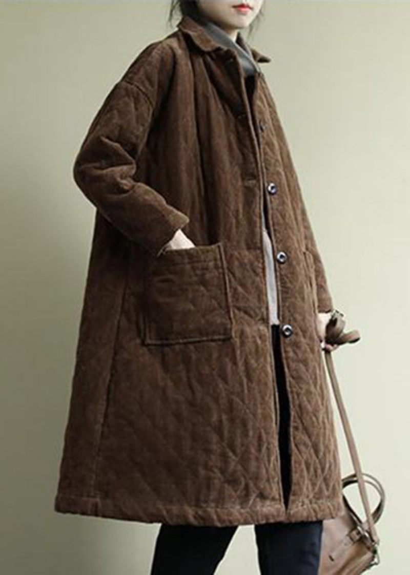 Kvinnor Kaffe Peter Pan Kragfickor Manchester Parka Vinter