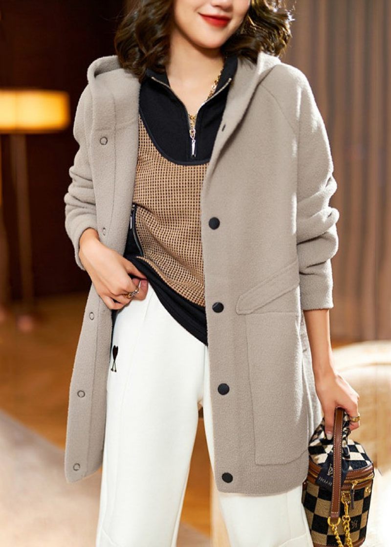 Kvinnor Khaki Hooded Fickor Patchwork Teddy Faux Fur Coat Höst