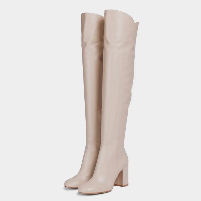 Kvinnor Lårhöga Stövlar Vinter Äkta Läder Högklackade Skor Kvinna Blixtlås Lyxiga Över Knä