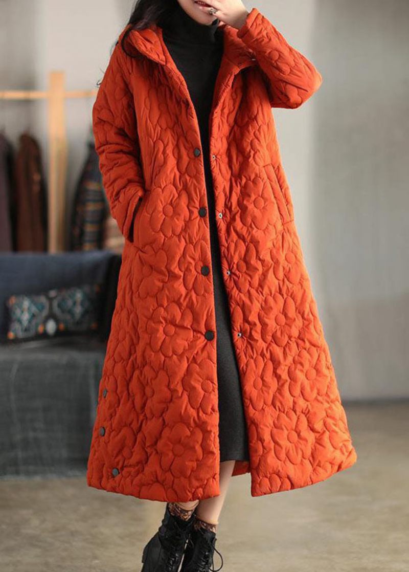Kvinnor Orange Hooded Enfärgad Fin Bomullsfylld Puffers Jackor Winter