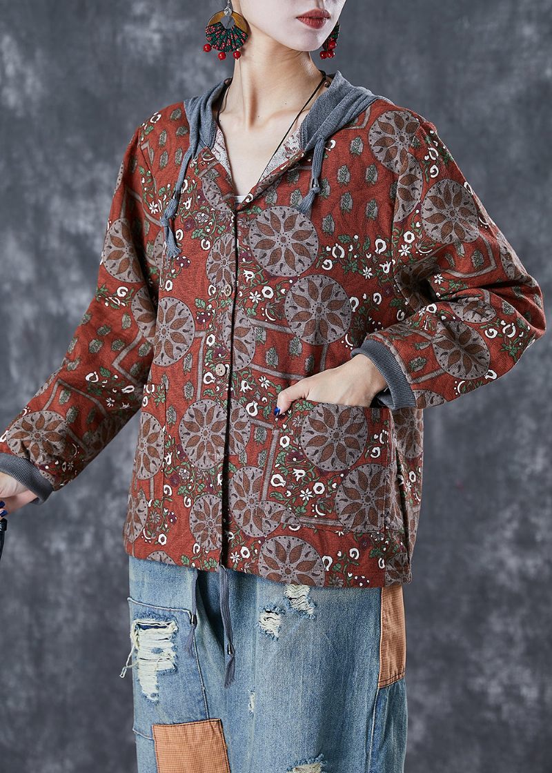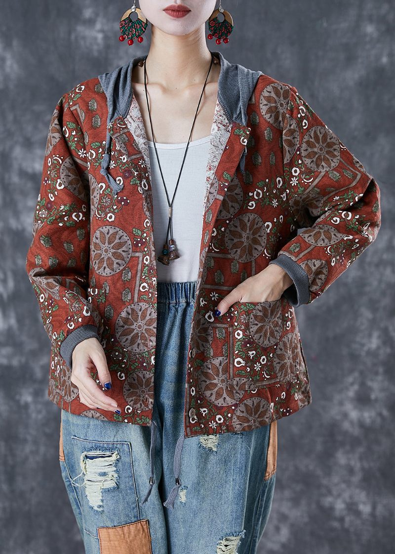Kvinnor Orange Röd Hooded Print Bomullsjacka Fall