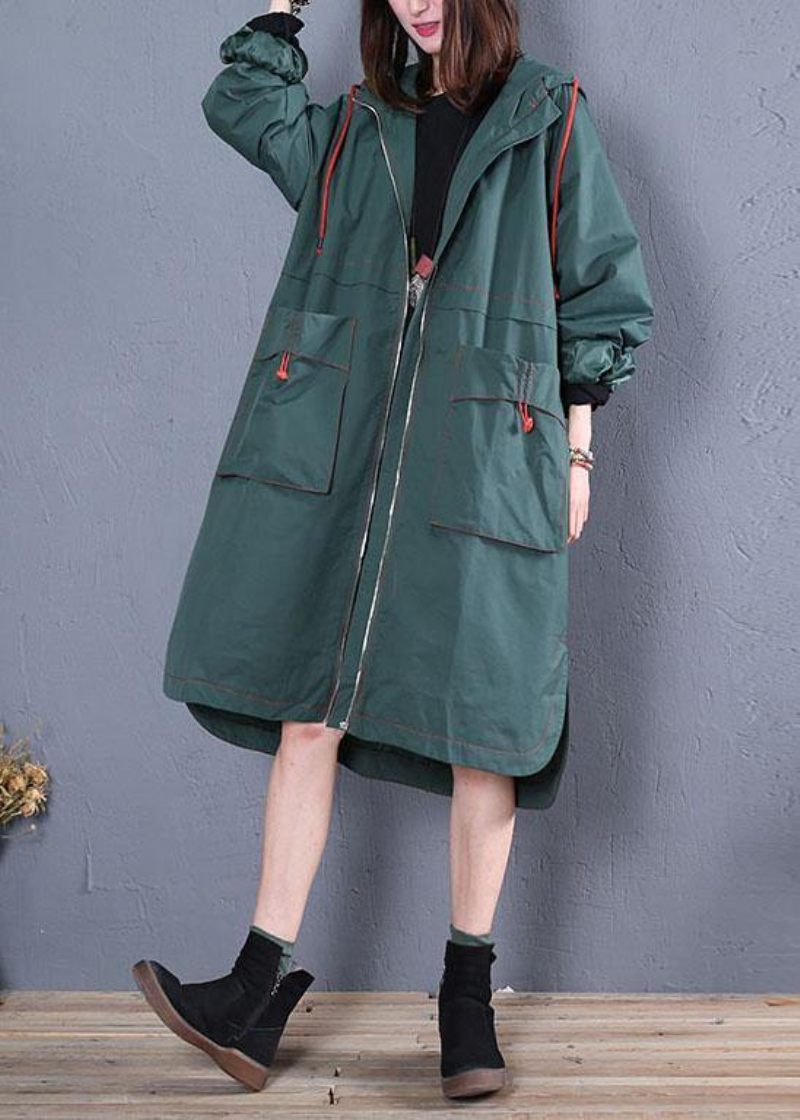 Kvinnor Oversized Maxi Kappa Höst Grön Sida Öppen Huva Kappor