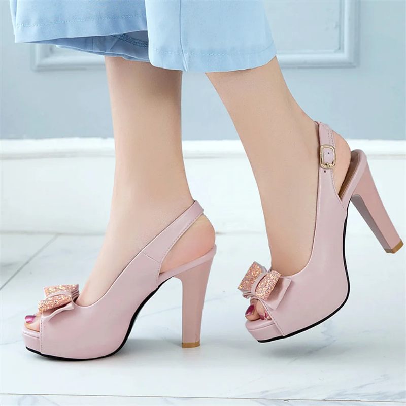 Kvinnor Plattform Höga Klackar Sommar Bow Peep Toe Damer Svart Brud Bröllop Skor Party Pumps