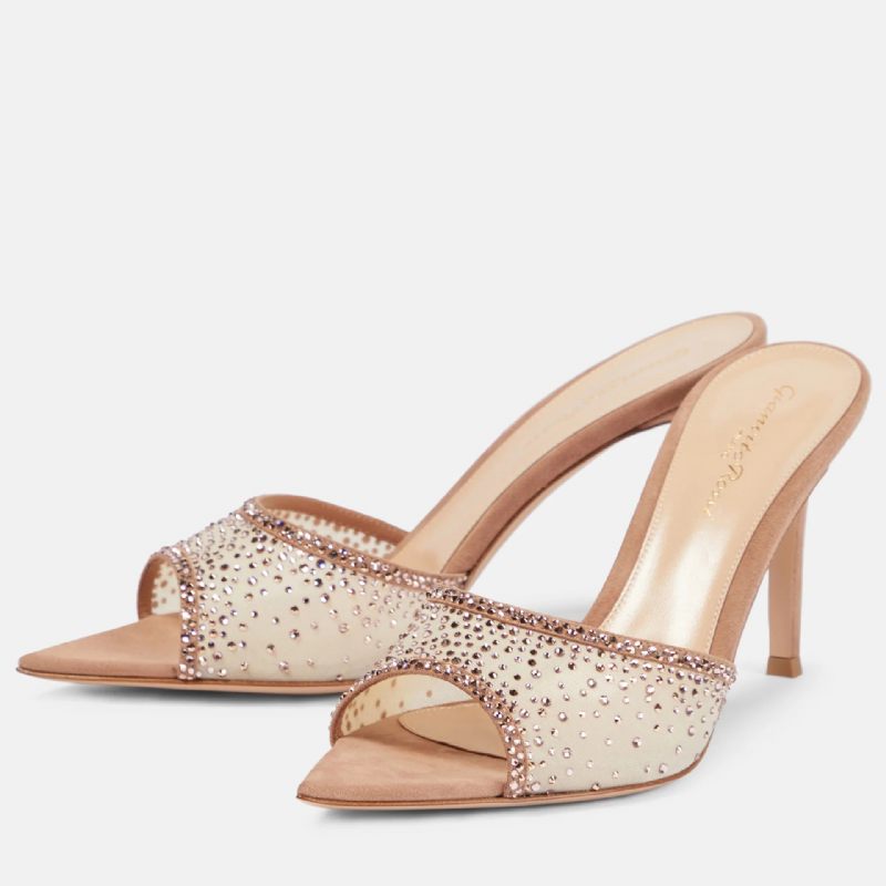 Kvinnor Rhinestone Tofflor Stiletto Höga Klackar Flip Flops Kvinna Spetsiga Öppen Tå Slides Partyskor