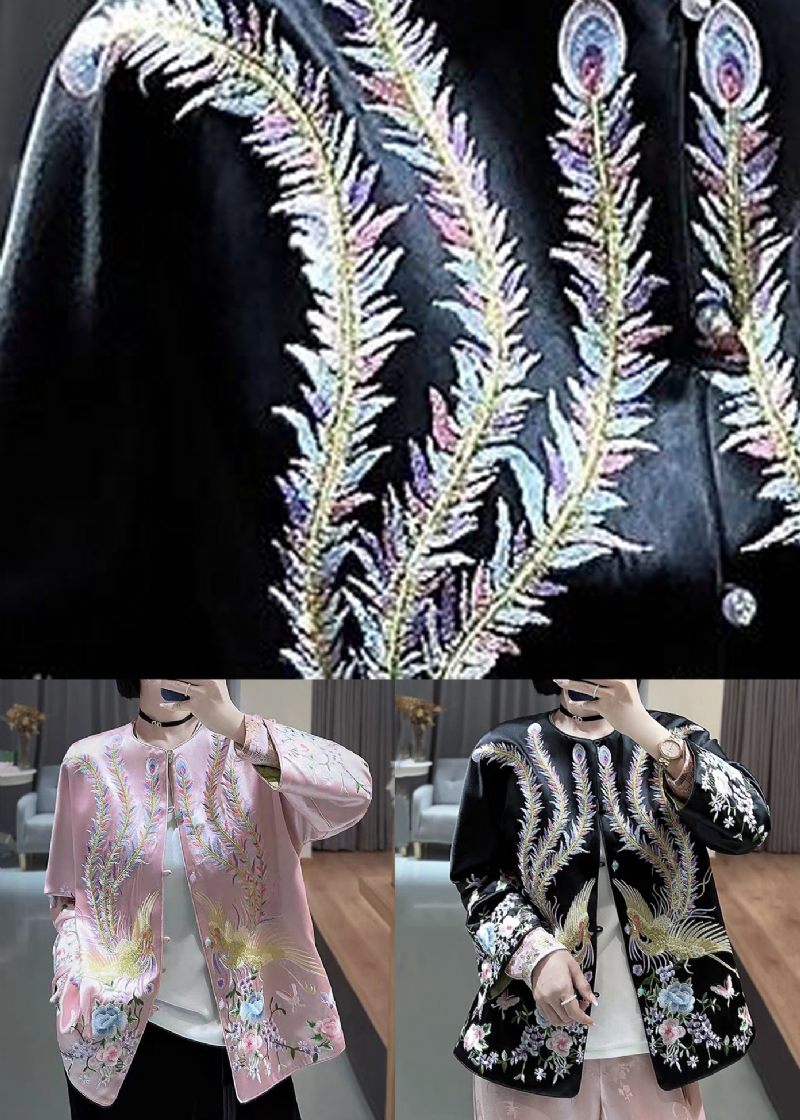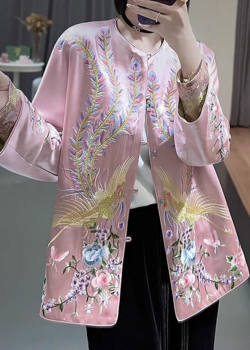 Kvinnor Rosa Broderad Slitage På Båda Sidor Sidenrock Våren