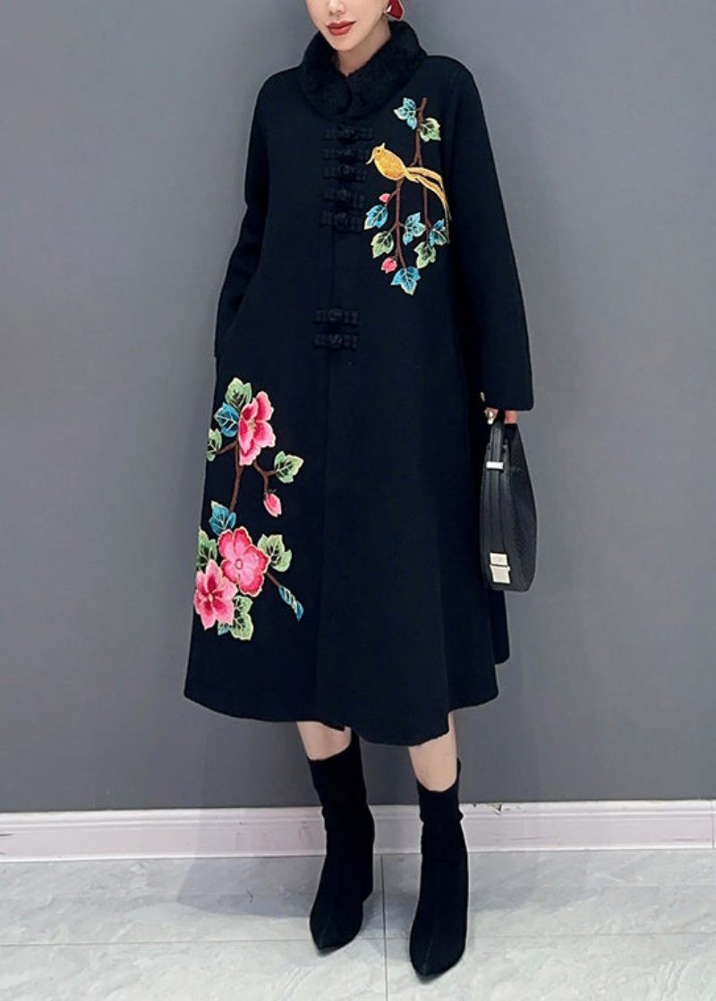 Kvinnor Svart Knapptryck Patchwork Bomull Stickade Kappor Långärmad