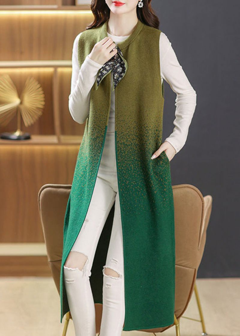 Kvinnor Svarta O-halsfickor Snörning Patchwork Ull Lång Väst Ärmlös