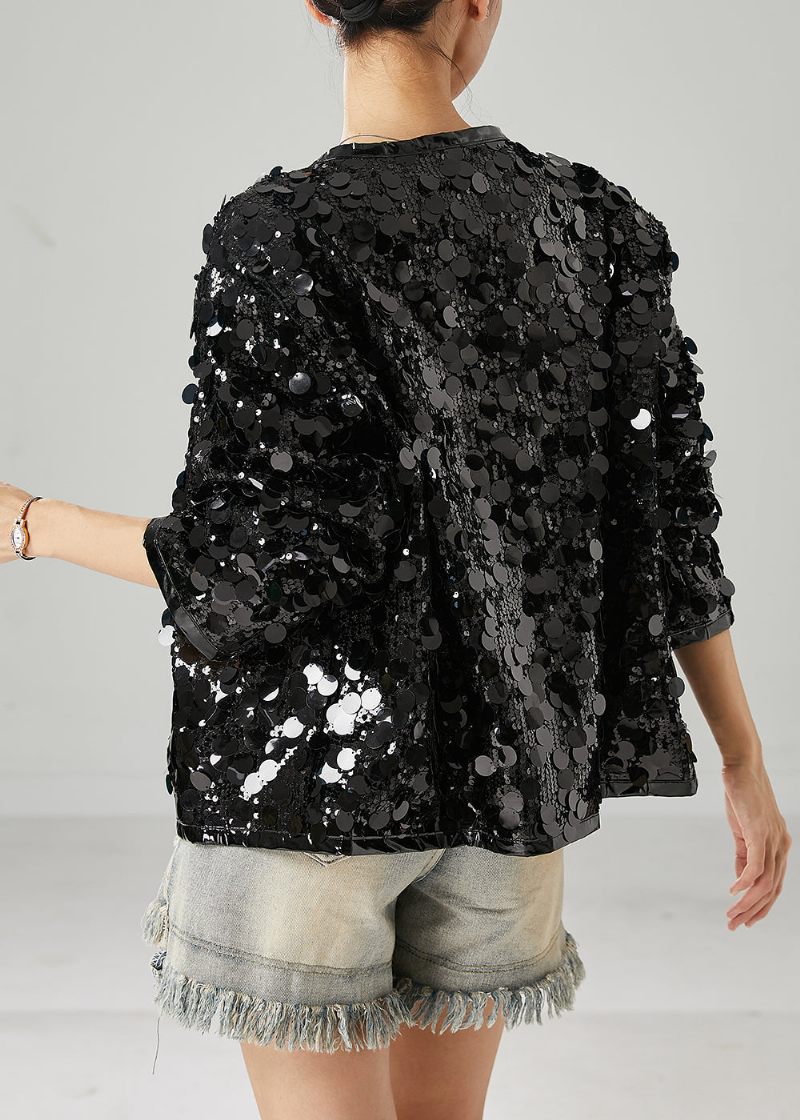 Kvinnor Svarta Paljetter Oversized Coat Spring