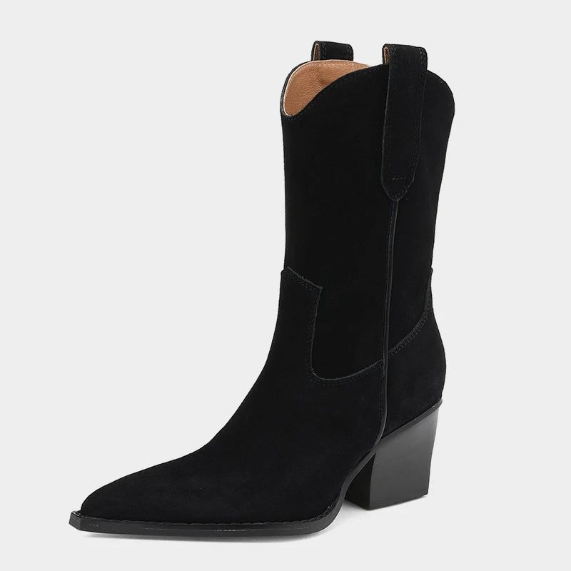 Kvinnor Western Stövlar Till Mocka Äkta Läder Tjocka Högklackade Skor Kvinna Vinter Casual