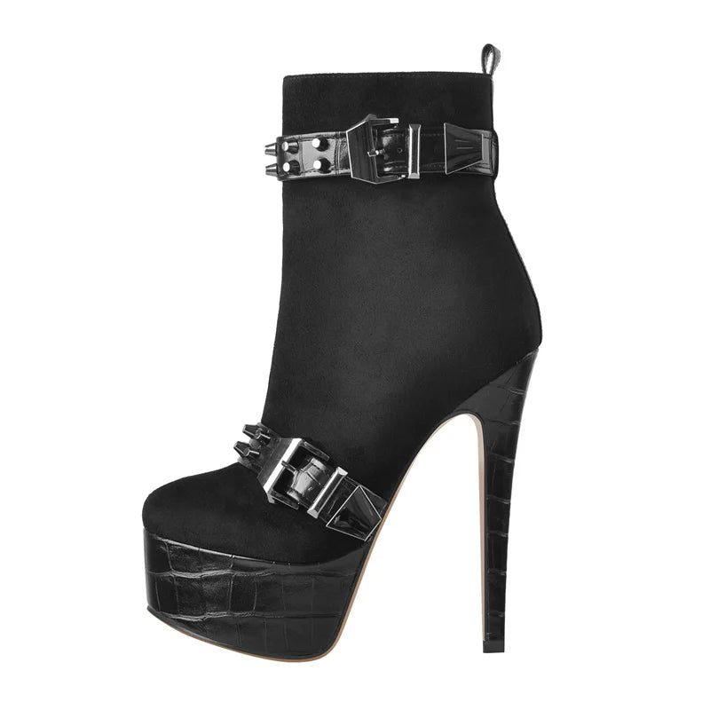 Kvinnors Plattform Ankelstövlar Metallspännen Nit Tunna Vinterstövlar Med Dragkedja Med Hög Klack