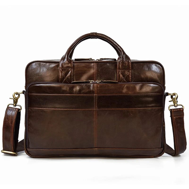 Läderportfölj För Man Business Handväska 15.6 Tum Laptop Portfolio Shoulder Messenger Bag