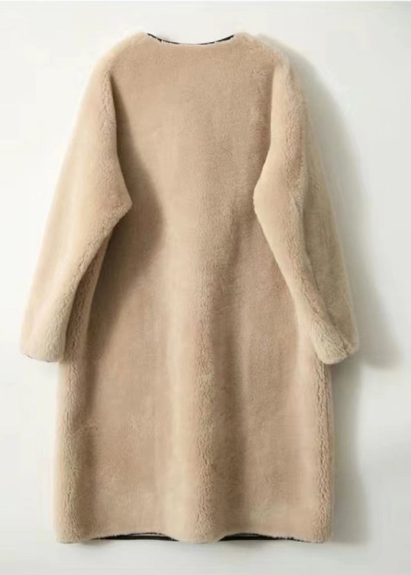 Lätt Kamelfickor Patchwork Ull Trench Knapp O-hals Vinter
