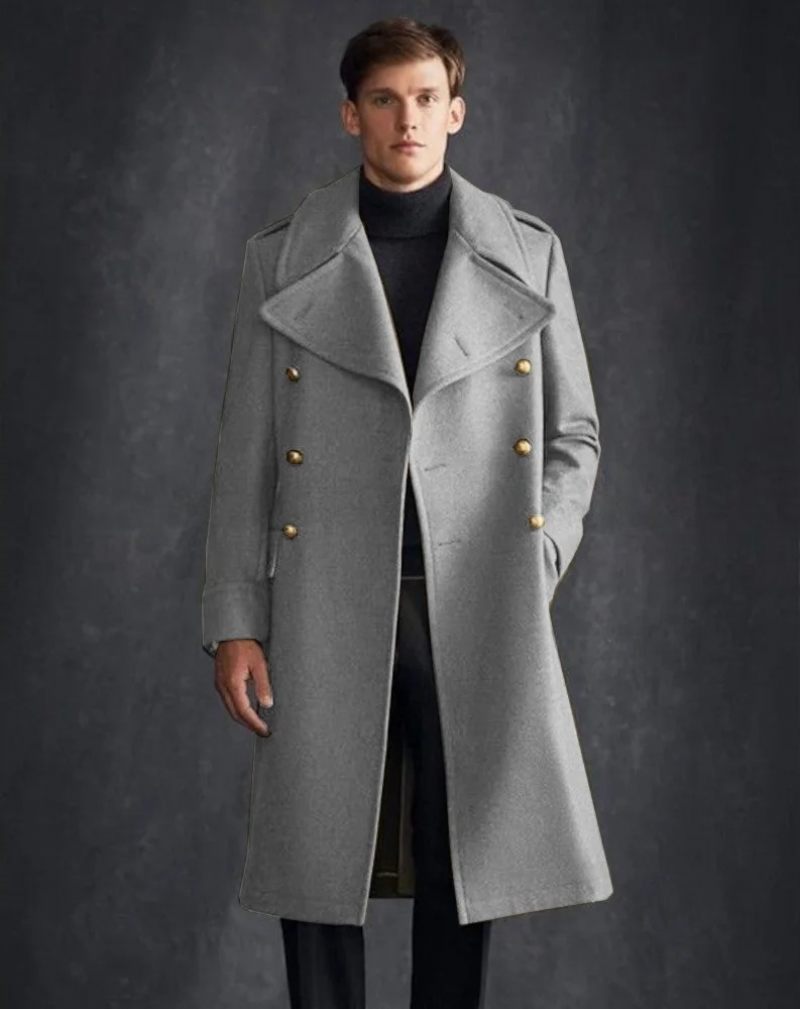 Lång Kappa I Ylle För Män V-ringad Enkelknäppt Business Casual Vikingkappa Vinterjackor För Man
