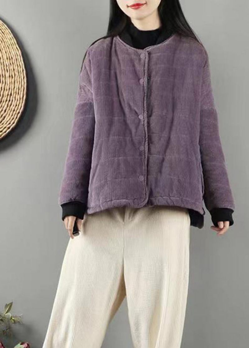 Lila Fickor Patchwork Fina Bomullsfyllda Kappor Vintage Winter