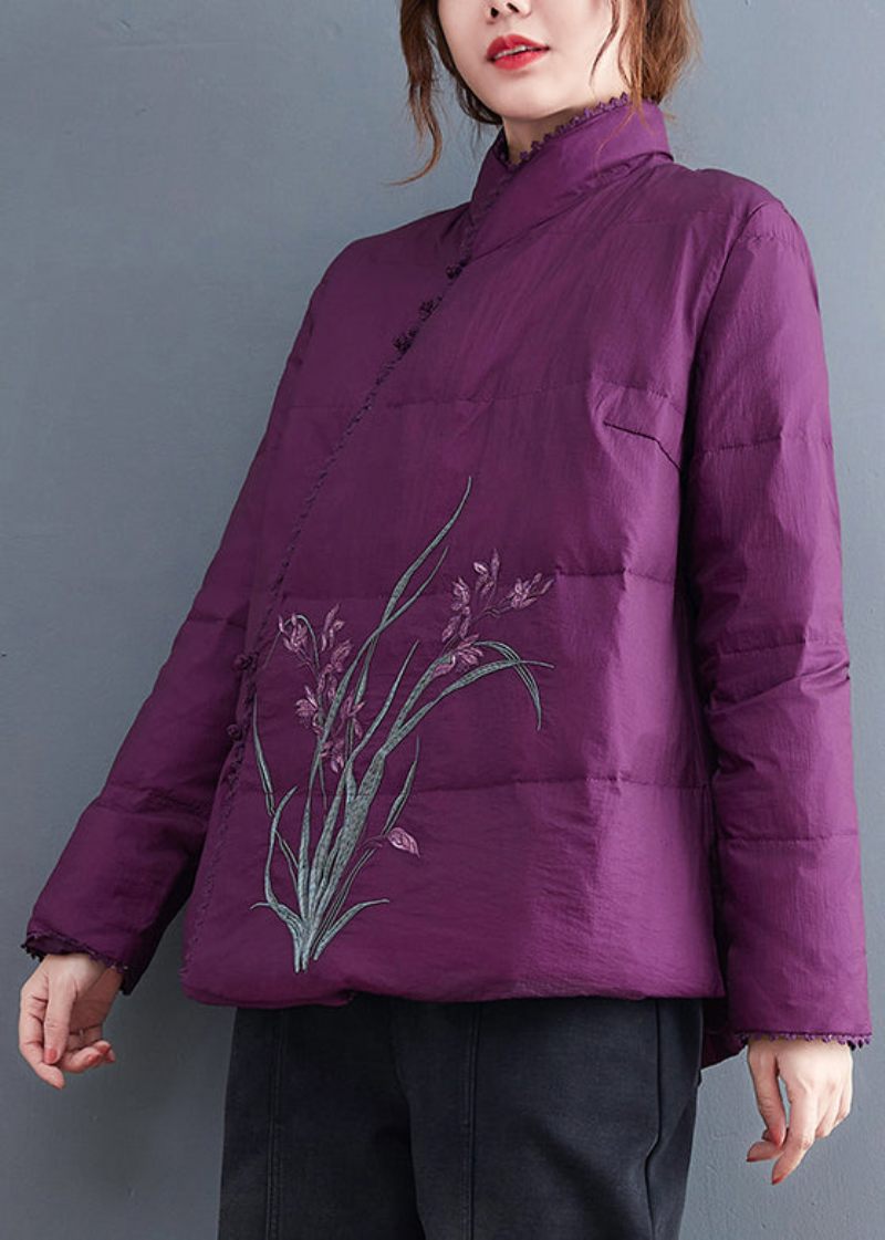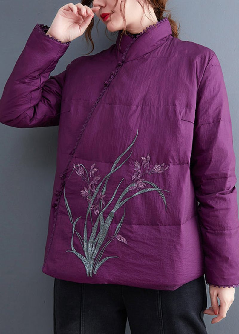 Lila Fina Bomullsfyllda Jackor Broderade Stativkrage Vinter