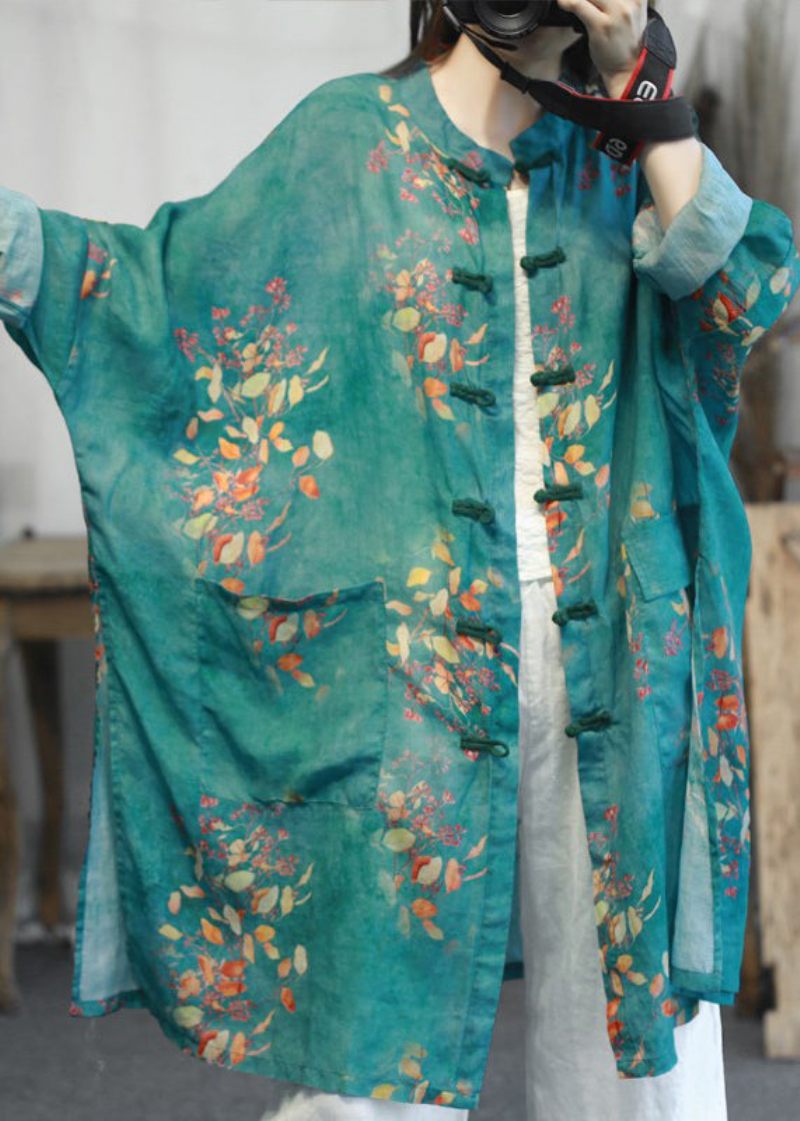 Lila Stativ Krage Tryck Sida Öppen Linnerockar Långärmad