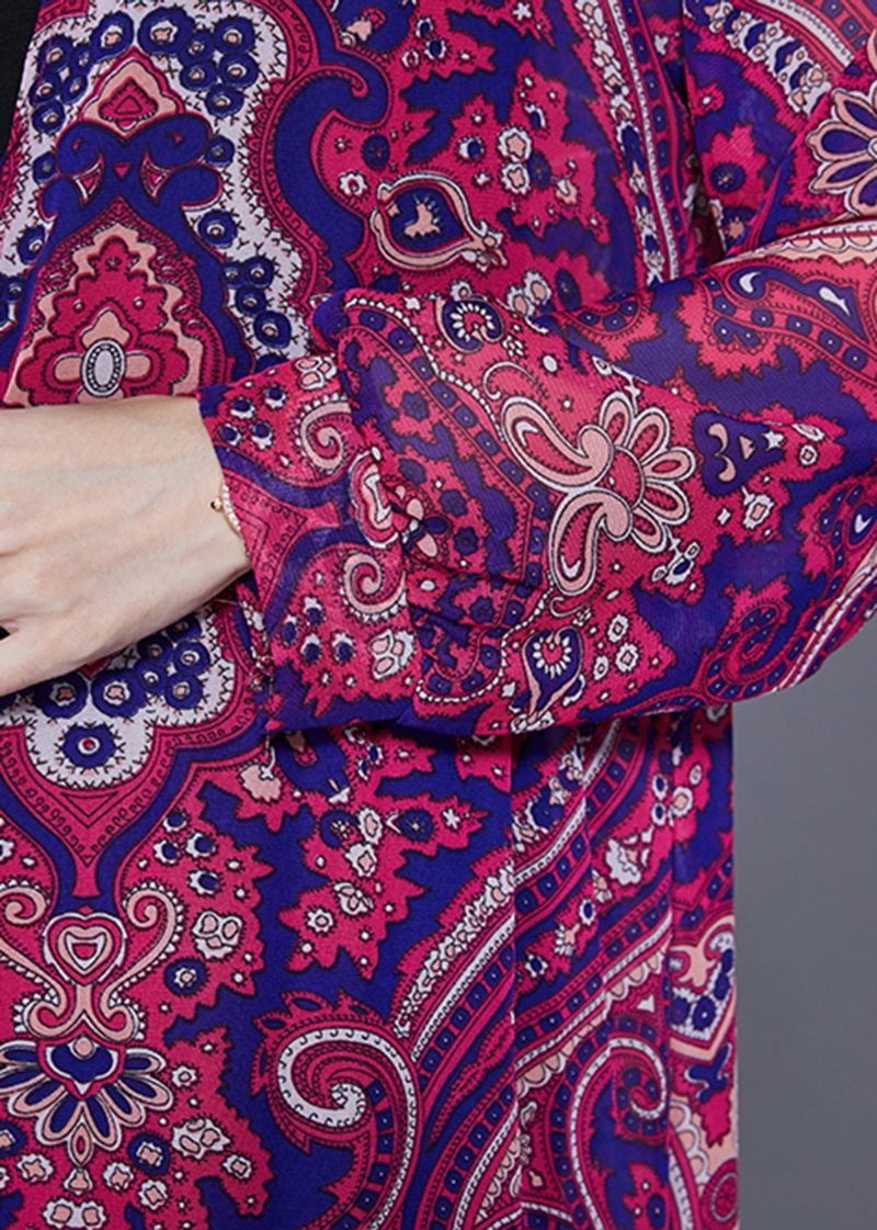 Lila Tryck Slim Fit Chiffong Upf 50+ Lång Cardigan Sommar