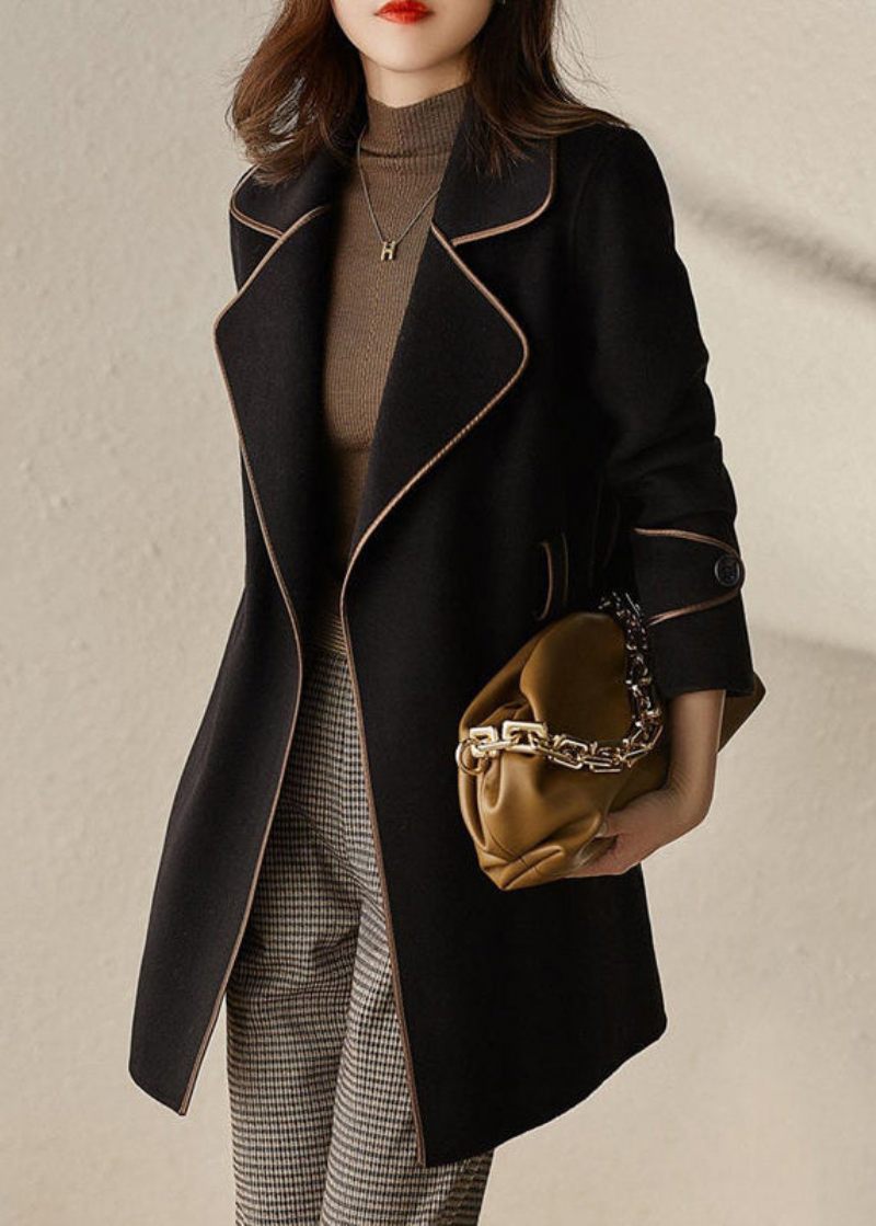 Lös Camel Tie Midjefickor Patchwork Yllerock Vinter