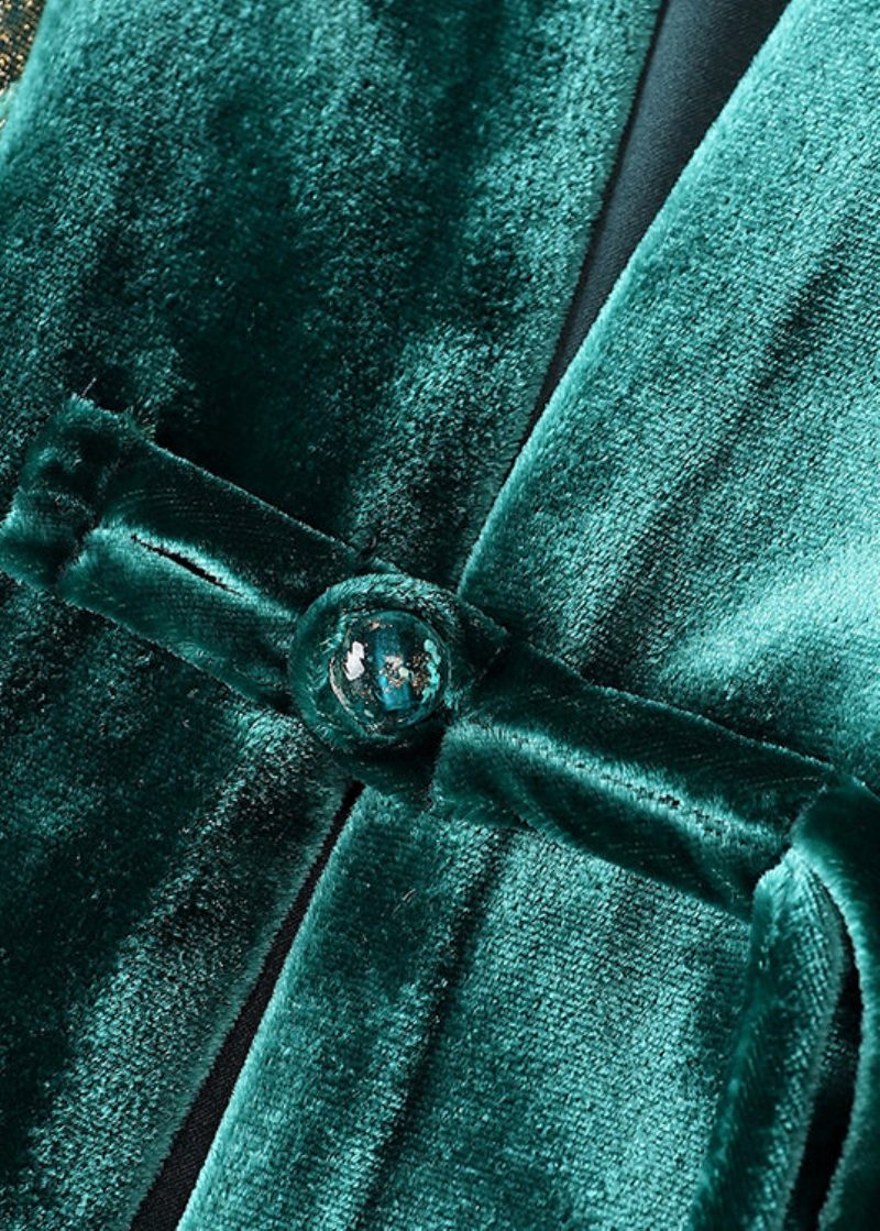 Lös Grön V-hals Jacquard Patchwork Silk Velour Coats Fall