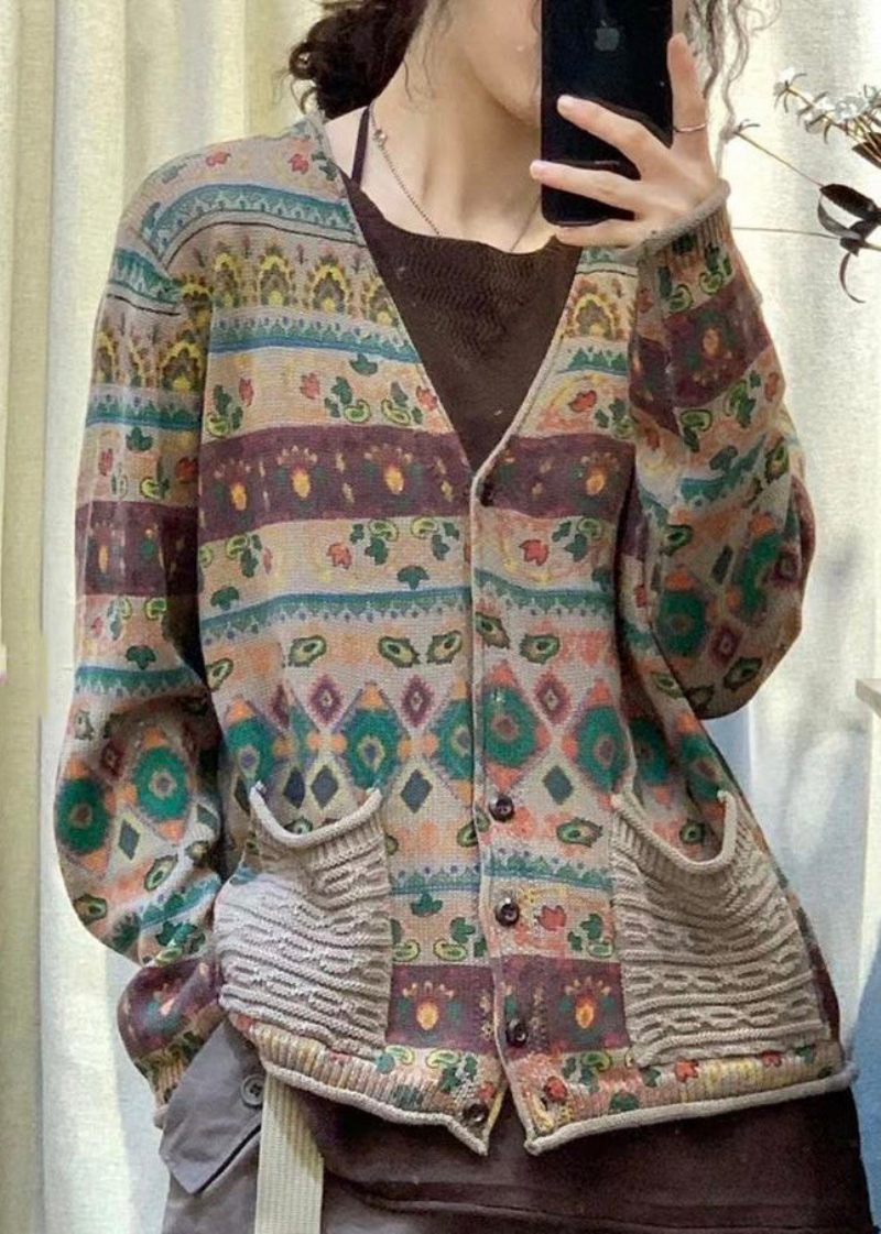 Lös Grön V-ringad Knappfickor Knit Coat Spring