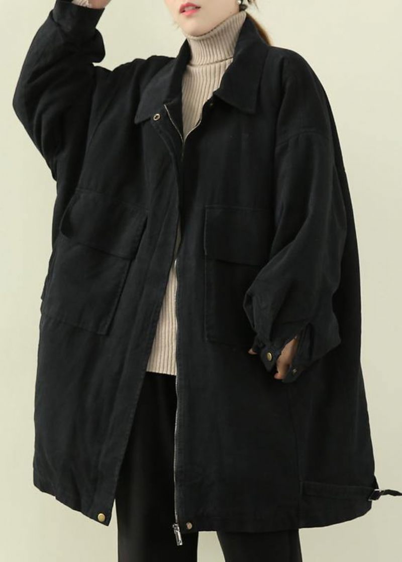 Lös Lapelkrage Mode Vårtunika För Kvinnor Svarta Överdimensionerade Ytterkläder