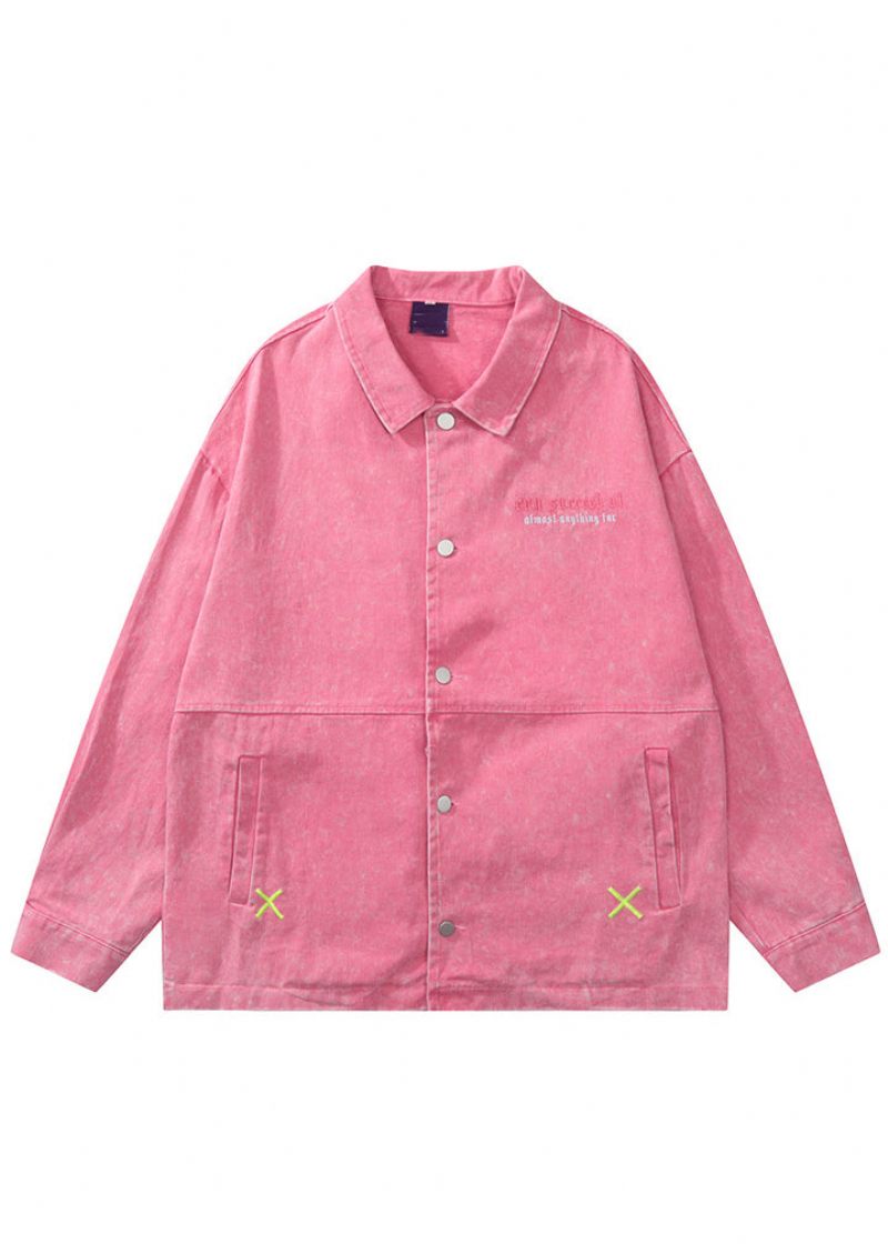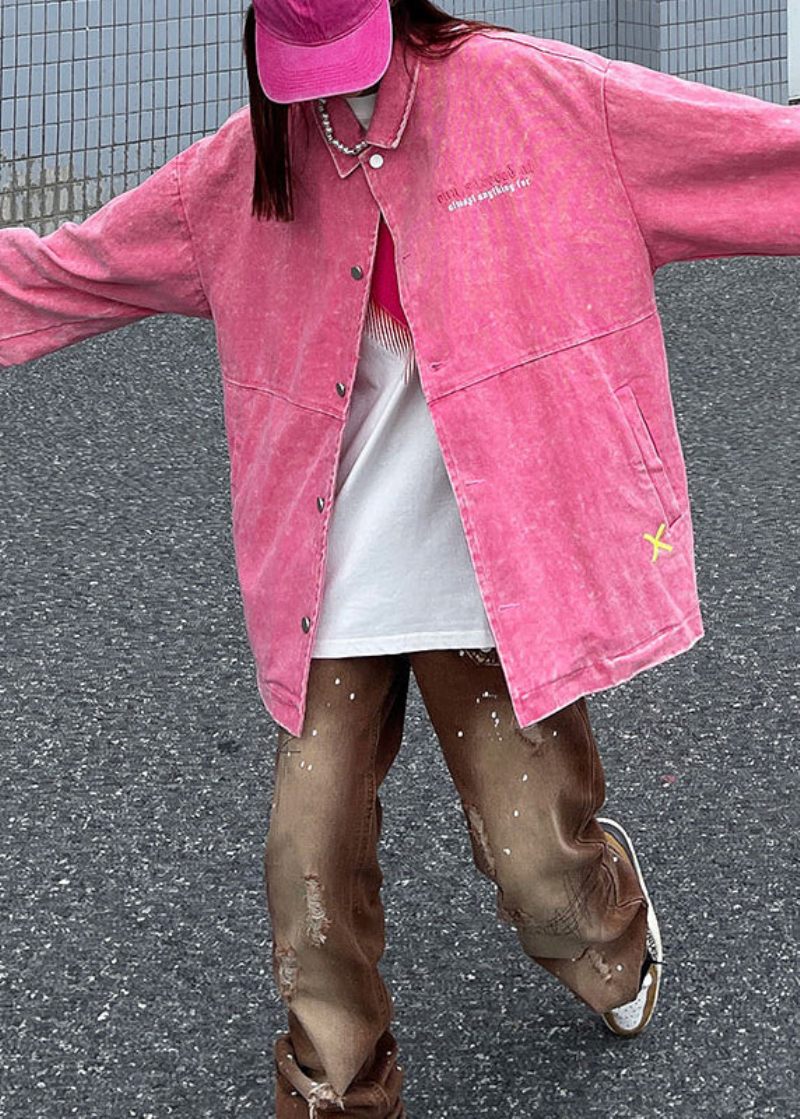 Lös Rosa Broderad Knapp Patchwork Denimrockar Höst