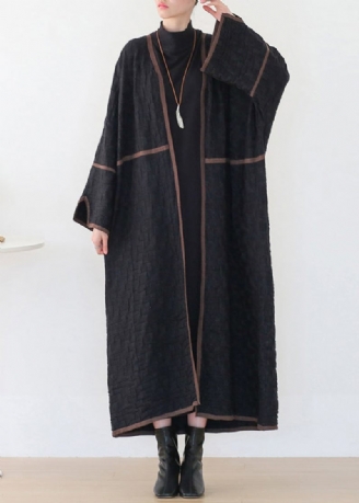 Lös Svart Pälskrage Print Button Yllerockar Långärmad