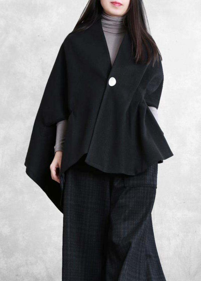 Lös Svart Ullblus V-ringad Kort Asymmetrisk Skjorta