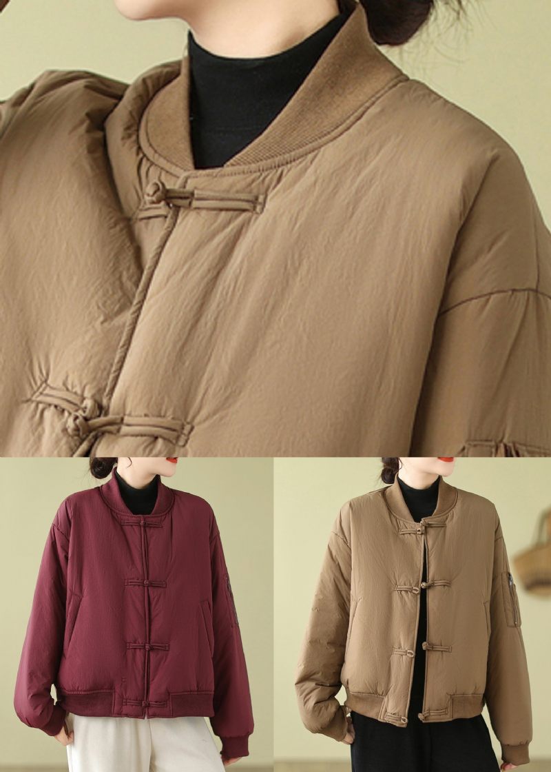 Lösa Khaki-knappfickor Bomullsfylld Parkas Långärmad