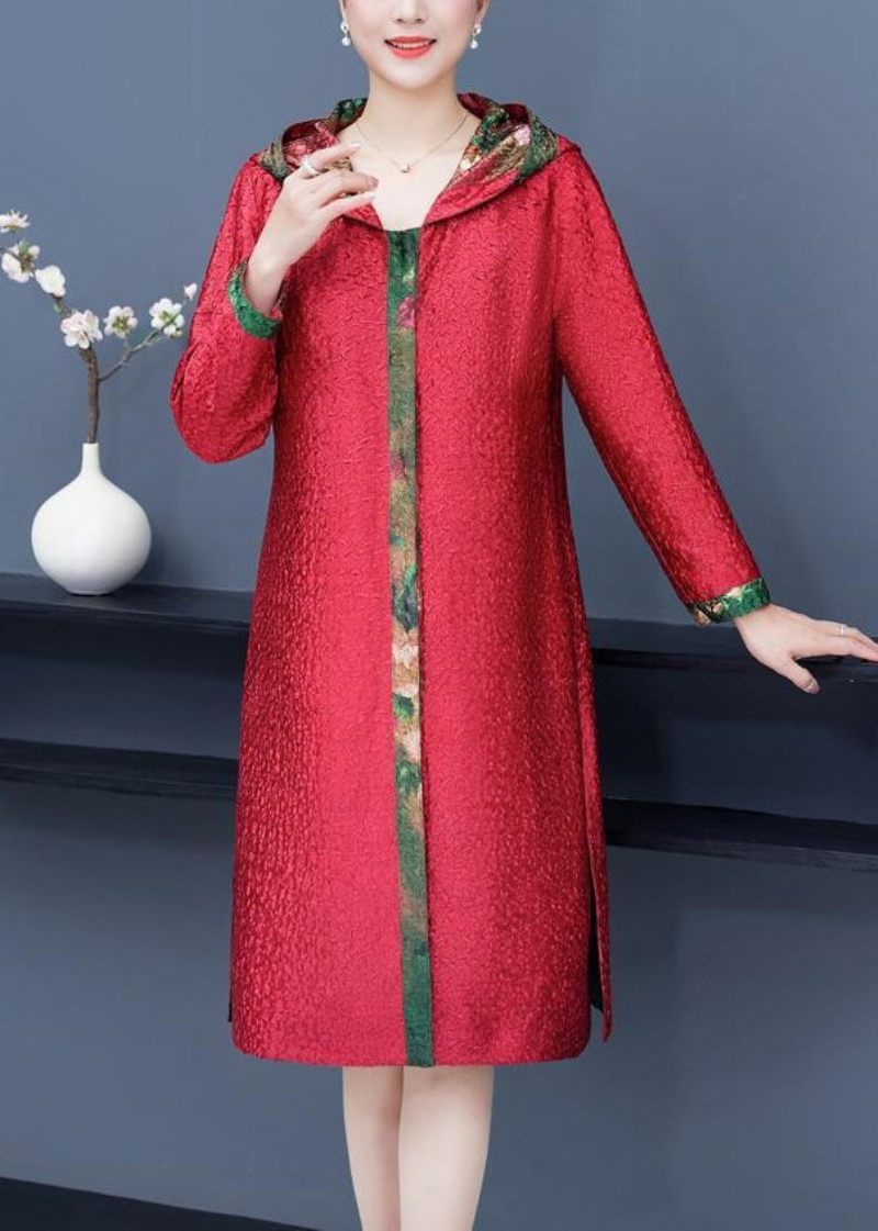 Lösa Röda Huvor Rynkiga Fickor Bär På Båda Sidorna Bomull Coat Fall