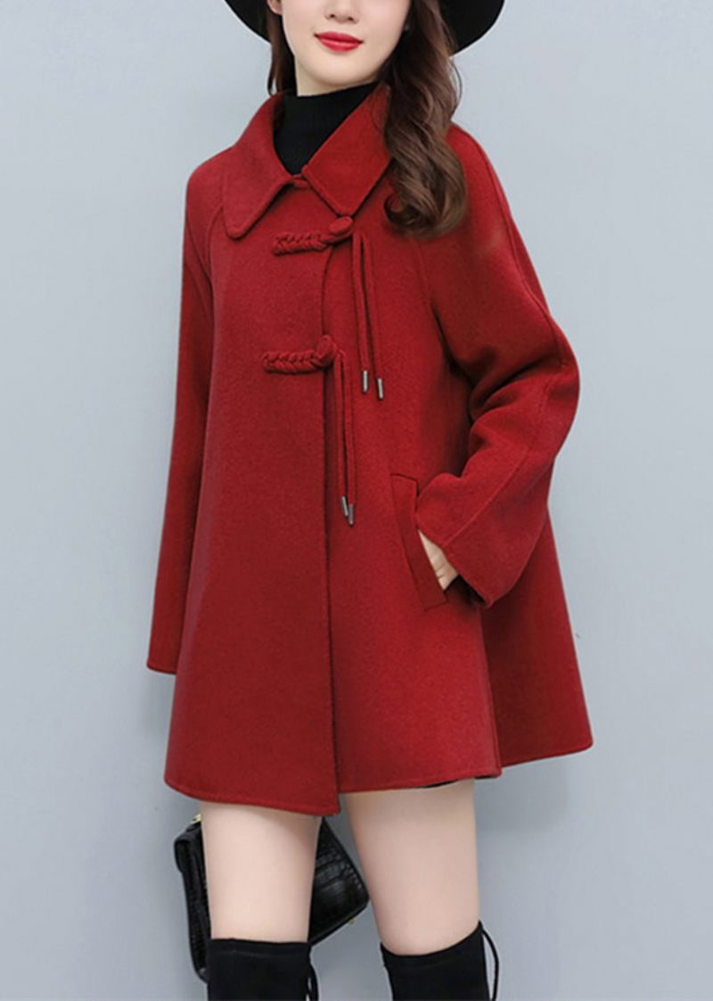 Lösa Röda Peter Pan Krage Knappfickor Yllerockar Höst