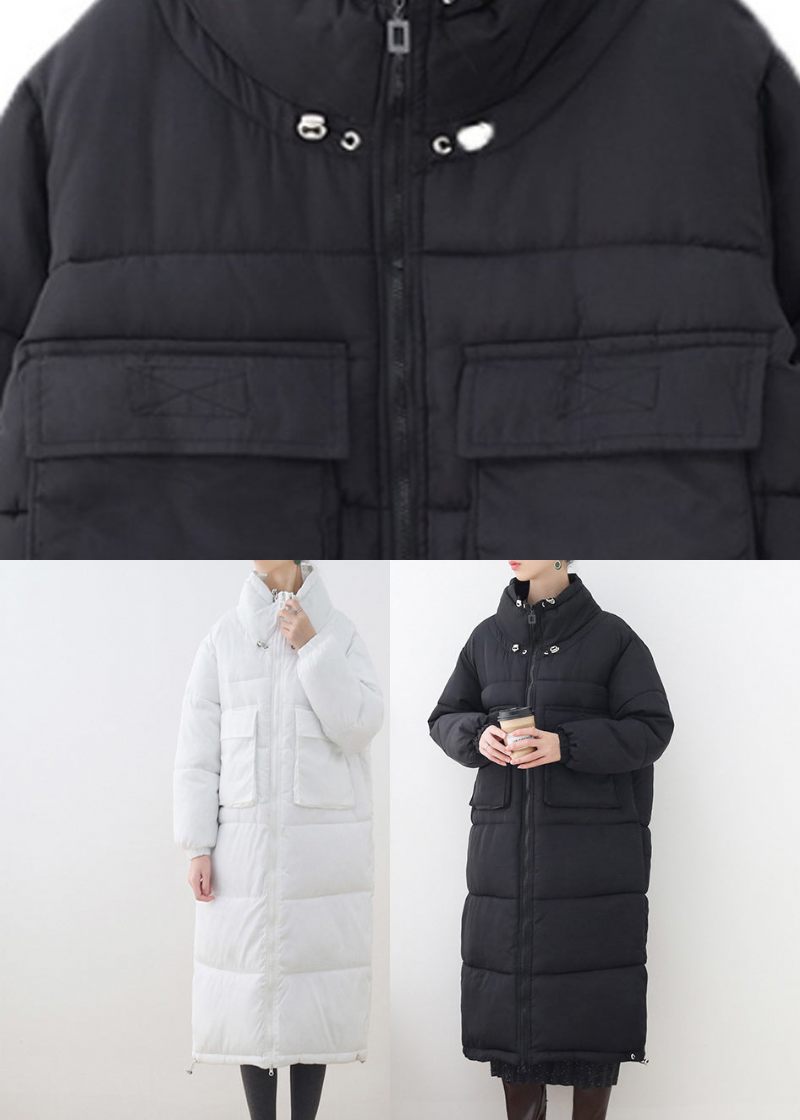 Lösa Svarta Stativ Krage Fickor Dragsko Tjock Parka Långärmad