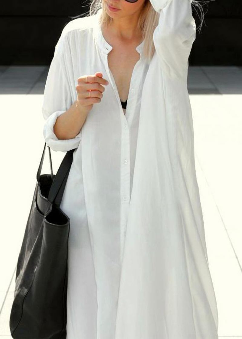 Lösa Vit Stativknapp Långa Skjortor Mid Dress Summer