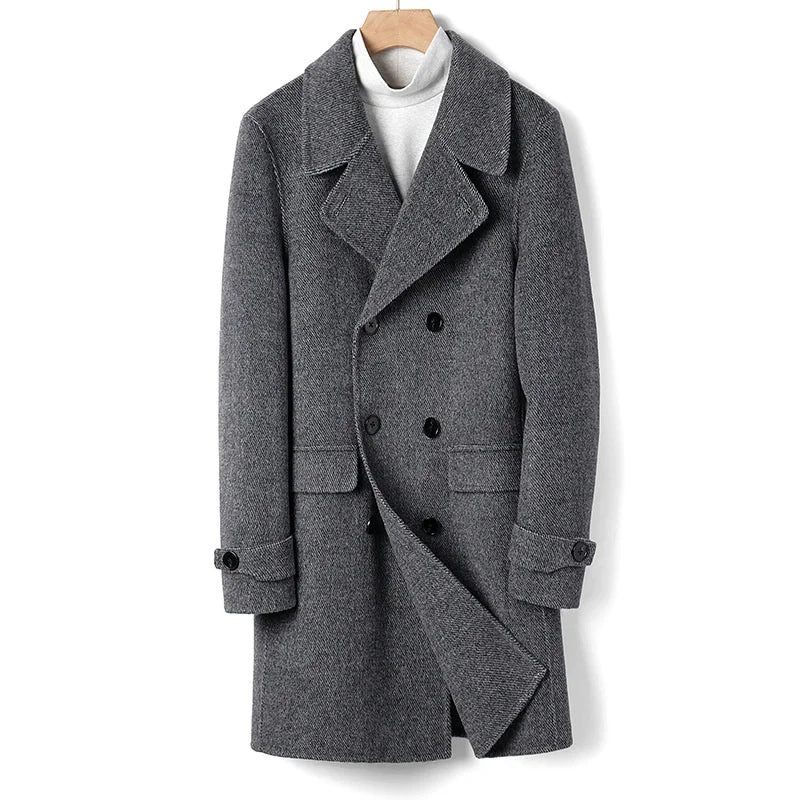 Lyxig Australisk Dubbelsidig Ullkappa För Män Avtagbar Mulberry Silk Liner Huva Tjock Kappa