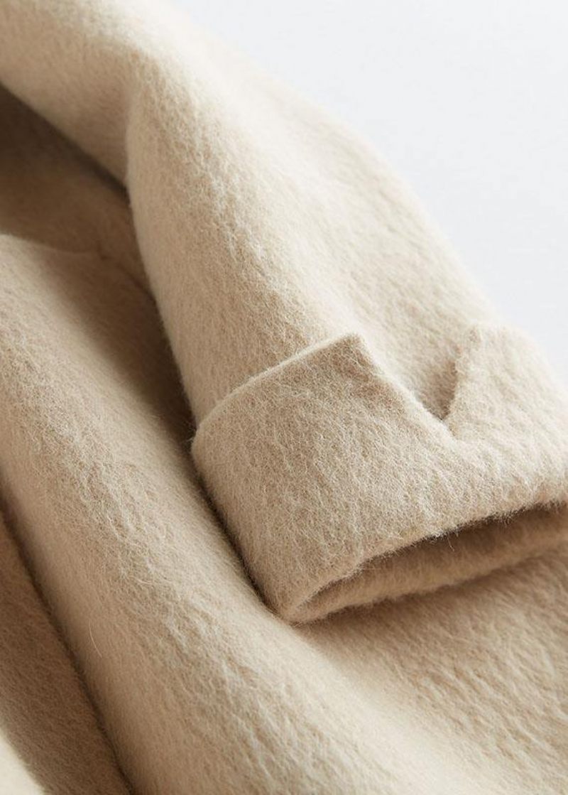Lyxiga Beige Ytterkläder I Ylle Löst Sittande Mellanlånga Kappor Skårad Jacka Lång Ärm