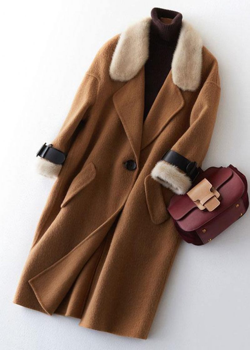 Lyxiga Plus Size-kläder Vinterjackor Pälskrage Ytterkläder Khaki Stora Fickor Ulljackor