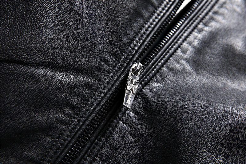 Män Skinnjacka Vår Och Höst Herr Svart Biker