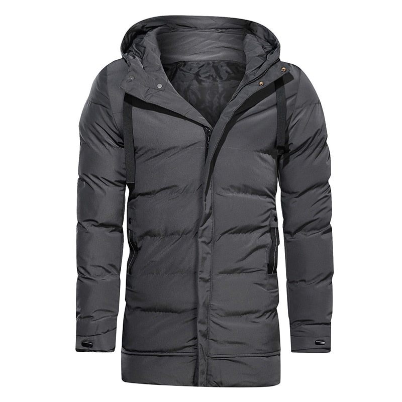 Män Vinter Lång Varma Parkas Huva Vindtät Solid Jacka Bomull Tjock Fritidskläder Ytterjacka Man Militära Bomberjackor