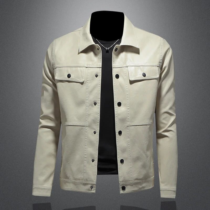 Mäns Lapel Motorcykel Läder Rock Stand Krage Slim Tide