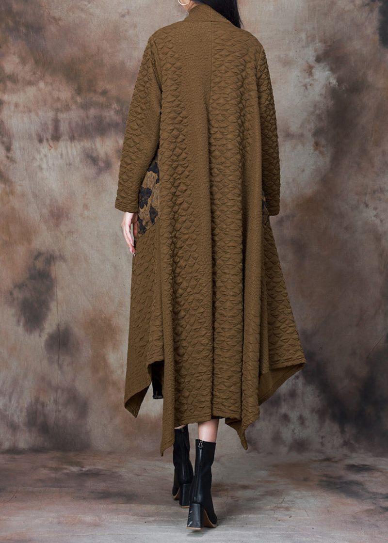 Matt Grön Patchwork Bomull Lös Kappa Asymmetrisk Fjäder