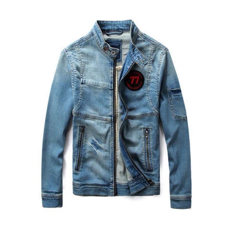 Men Jean Jacket Motorcykel Vintage Stand Collar Jeansjacka