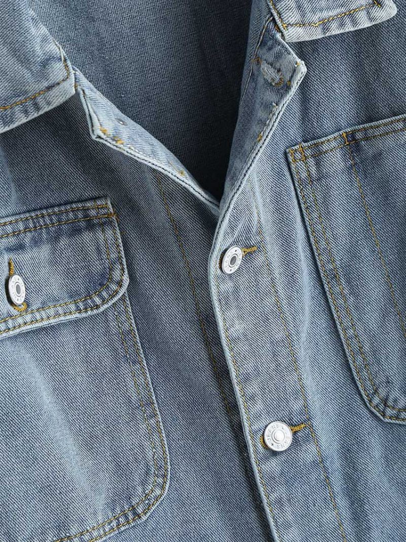 Men Tooling Jean Vest Streetwear Ärmlös Cargo Väst Solid Turn-down Krage Jacka Gilet Jeansväst Med Fickor