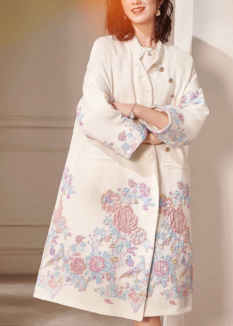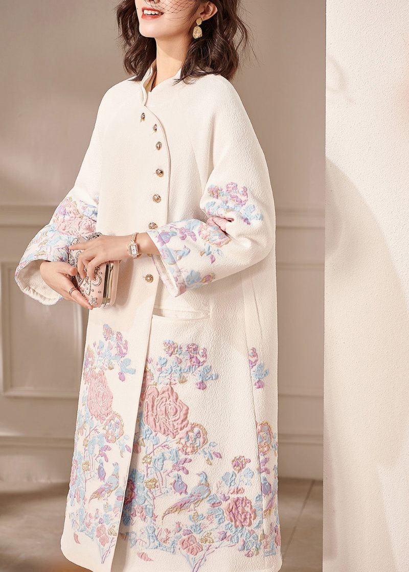 Middag Vit Stativ Krage Broderad Knapp Tjocka Bomullsrockar Våren
