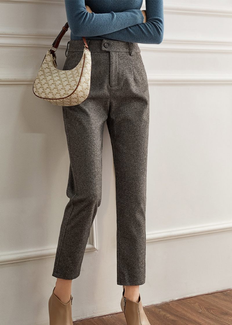 Mode Beige Knappfickor Med Dragkedja I Ylle Raka Byxor Höst