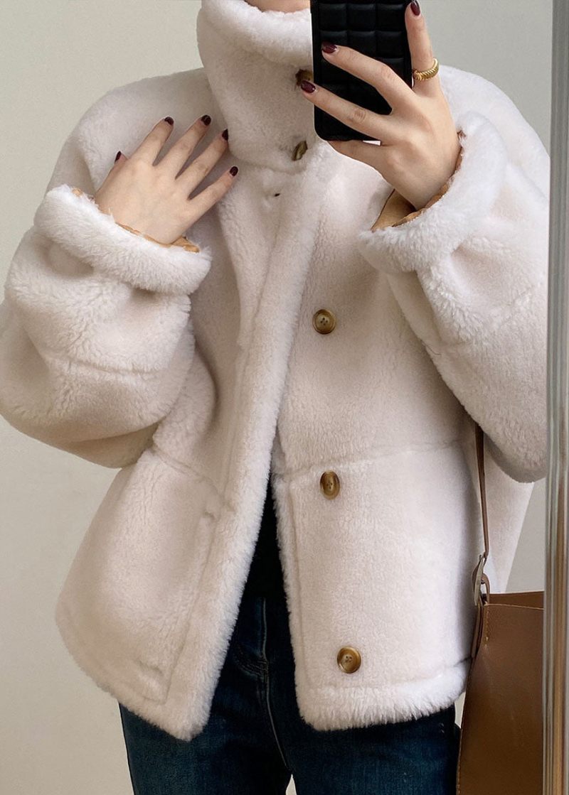Mode Camel Stativ Krage Fickor Patchwork Slitage På Båda Sidor Tjock Fleecejacka Långärmad