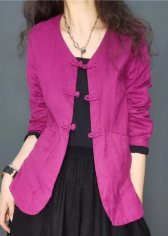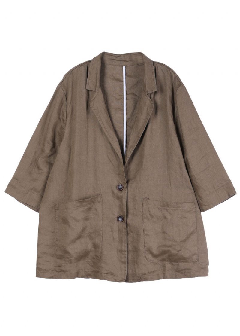 Mode Mörkbrun Naggad Krage Fickor Linnerock Långärmad