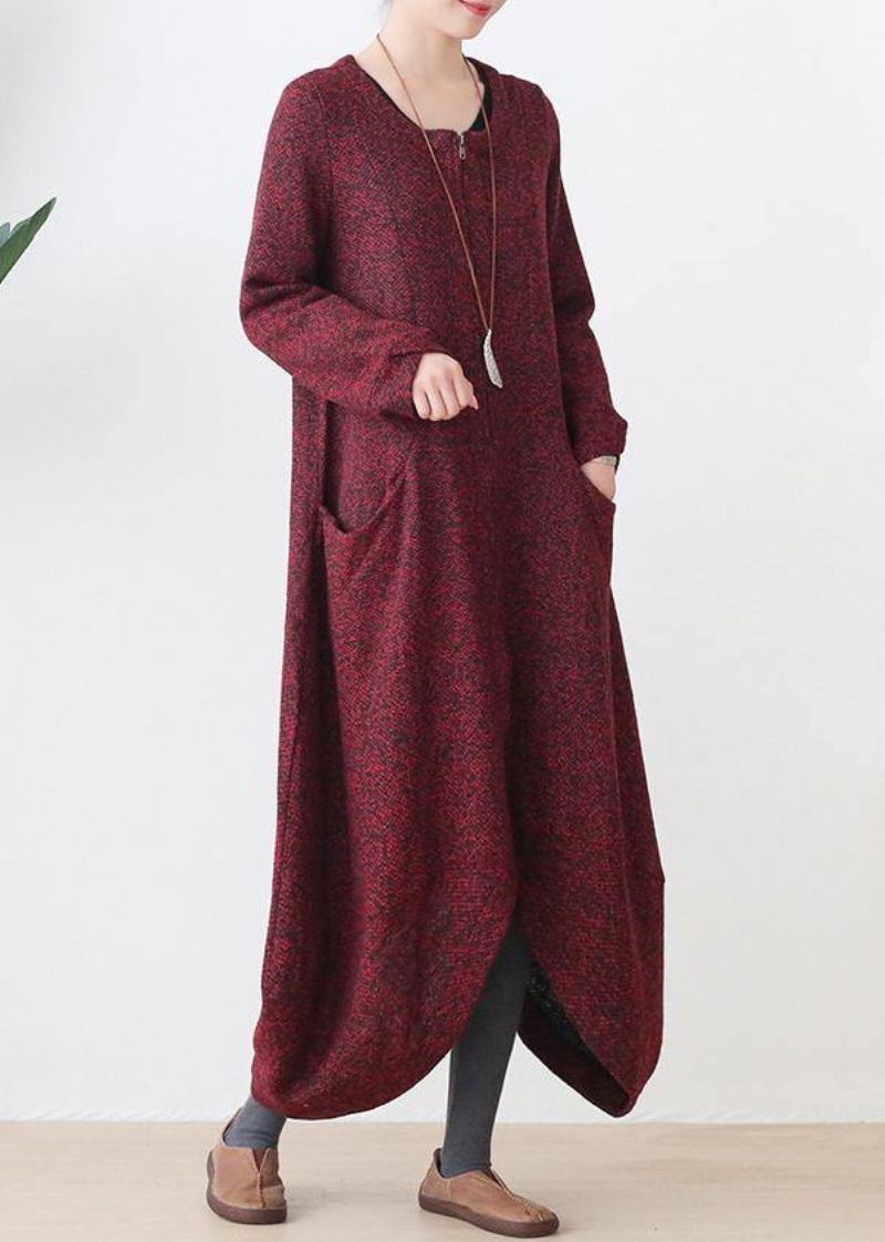Mode Oversize Mellanlång Kappa Vinterkappor Röd V-ringad Asymmetriska Ulljackor