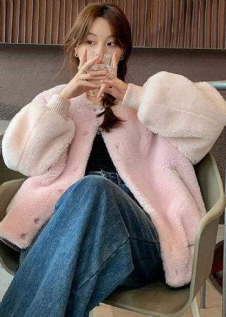 Mode Röd Pälskrage Pläd Patchwork Yllerockar Vår
