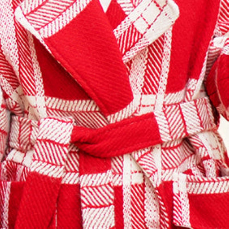 Mode Röd Vit Rutig Kappa Casual Naggad Knyt Midja Kappor Modefickor Yllejackor