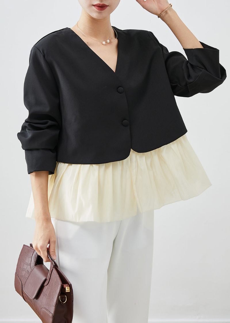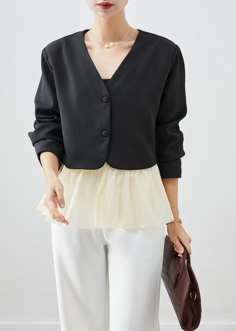 Mode Svart V-hals Patchwork Spandexrockar Höst